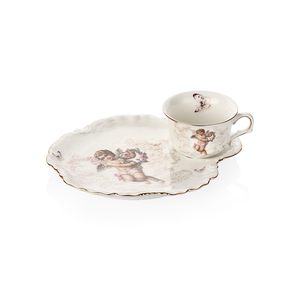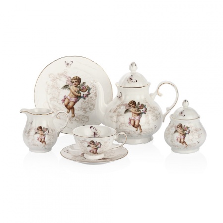 Bernardo Angel serisi çeyizlik çay seti kenarı yaldızlı olarak tasarlanmış klasik bir porselen görüntüsü içinde olmakla birlikte melek motifleri ile son derece romantik modern bir çizgi yakalamış. Bu tarz bir çeyizlik porselen günümüz gelinleri tarafından sıklıkla tercih ediliyor.