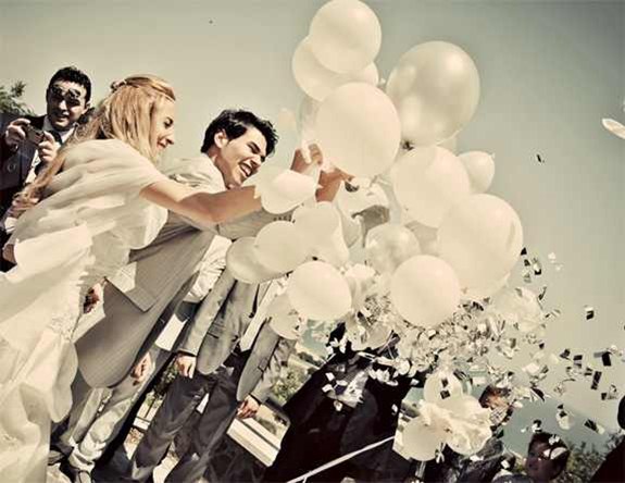 Balonları uçuran bir çift, yüzlerinde o anın verdiği muhteşem bir gülümseme! Etraflarına yaydıkları o enerji ise tamda günü anlatan bir mesaj içerisinde. Bembeyaz balonları mutlu bir ömür dileği ile bırakıyorlar gök yüzüne. Düğün fotoğrafı fikirleri arasında siz önerilerimiz arasında yer alan bu fotoğraf albümünüzde yer alabilecek bir an.