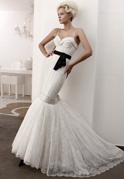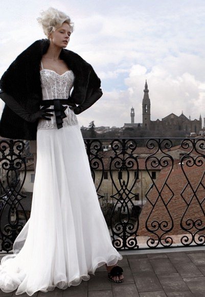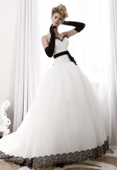 İki rengin birbirine ne denli yakıştığı noktasında fazla söze gerek duymuyoruz. Özellikle beyaz ağırlıklı bir kıyafet üzerine siyah detayların çok şık durduğu kanısındayız. Siyah beyaz gelinlik modelleri 2010 senesinden beri gelin adayları tarafından rağbet görüyor. En çok kullanılan şekli ise bembeyaz bir gelinlik üzerine kullanılan siyah kuşak.