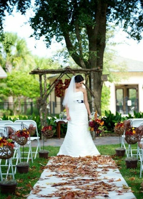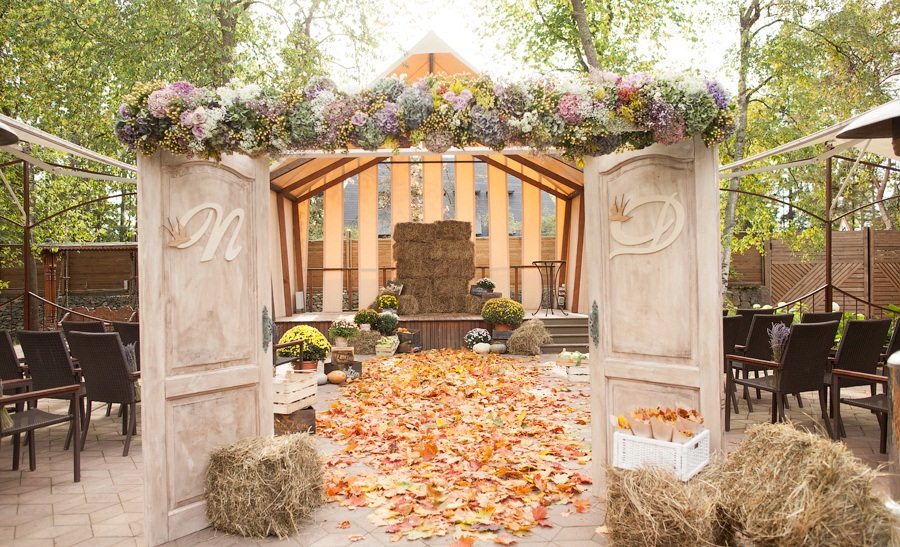 Bal kabaklarının yer aldığı bir tema sonbahar düğün konsepti için biçilmiş bir kaftan. Ayrıca kuru çiçeklerin asıldığı sandalyeler ve yine kuru dalların yer aldığı masa dekorasyonları sonbahar düğünü için doğru tercih. Masa süslemesi için kullanılacak çiçeklerin ise turuncu renkte olması yine seçimleriniz arasında bulundurmanız gereken detaylardan.